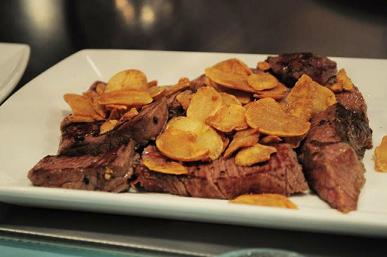 鴨胸煎的酥酥脆脆~最後在加上白蘭地點火燃燒~就完成了!